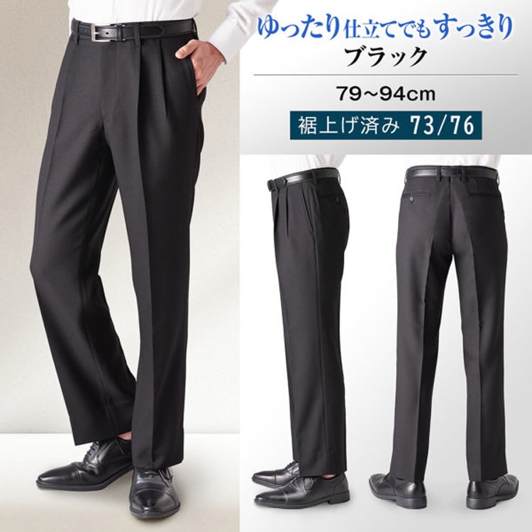 トップ > スラックス > スラックス メンズ 裾上げ済み ウォッシャブル 無地 ツータック