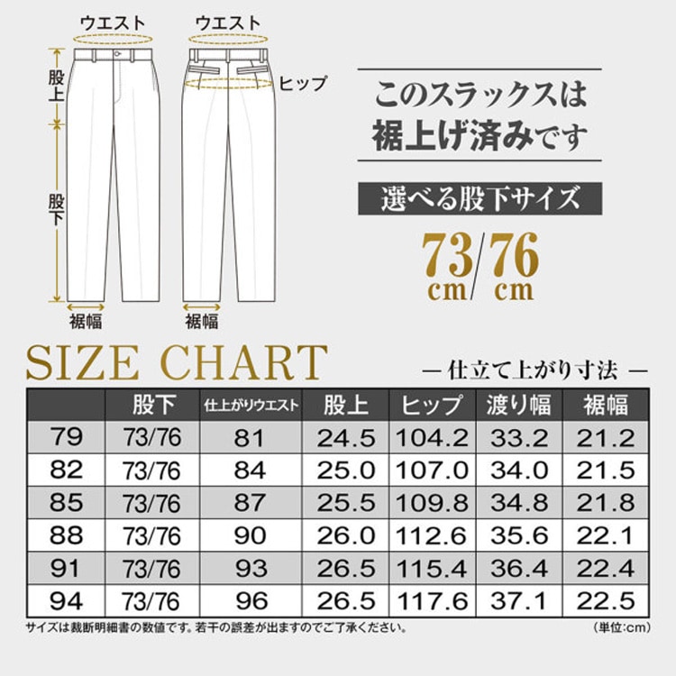【お取り扱いサイズ】 股下73cm/ウエスト 79cm,82cm,85cm,88cm,91cm,94cm 股下76cm/ウエスト 79cm,82cm,85cm,88cm,91cm,94cm