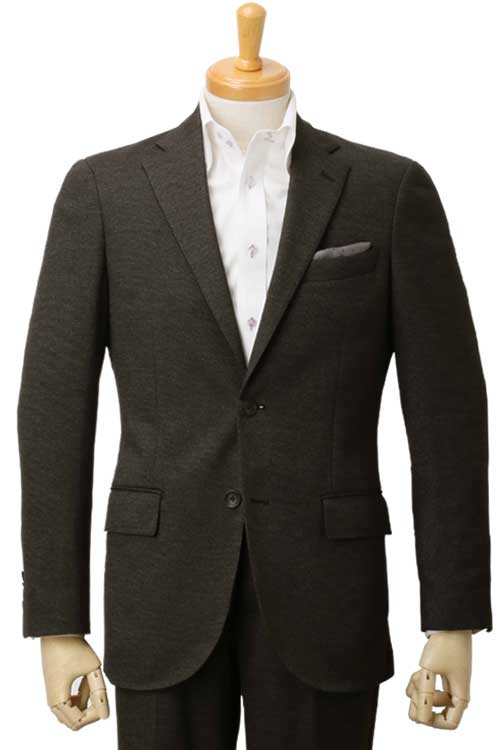 ニット素材 スラックスウエスト紐仕様 チャコール バーズアイ 秋冬 2つボタンモードスリムスーツ DILETTO IZM