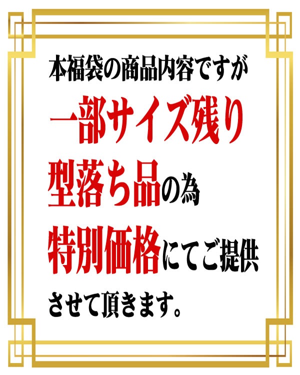 こちらの福袋は超特価の為、キャンセル・返品・交換は受けかねます。