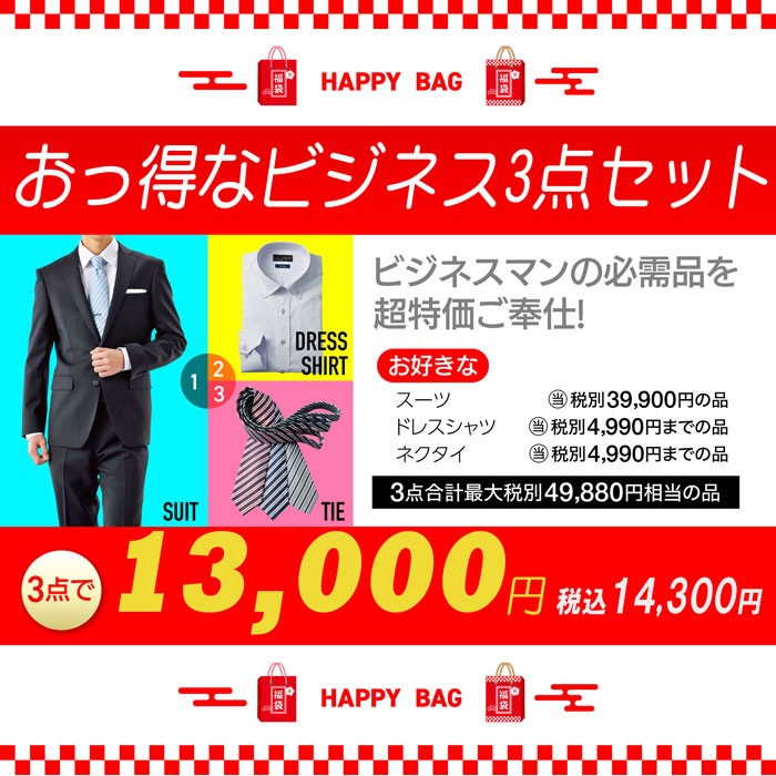紳士 ビジネススーツ福袋 送料無料 コーディネート3点セット 春夏秋冬30代 40代 50代