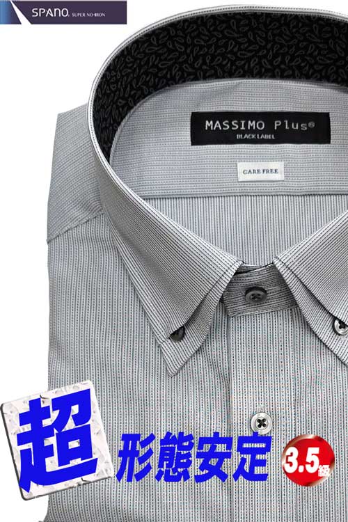 ワイシャツ メンズ 長袖 形態安定 ドレスシャツ Yシャツ SPANO スパーノ ノーアイロン ベーシック ボタンダウン Mグレードビー柄