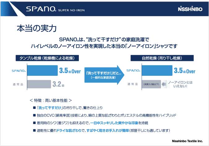 ① 超形態安定 【SPANO】 洗って干してすぐ着れる