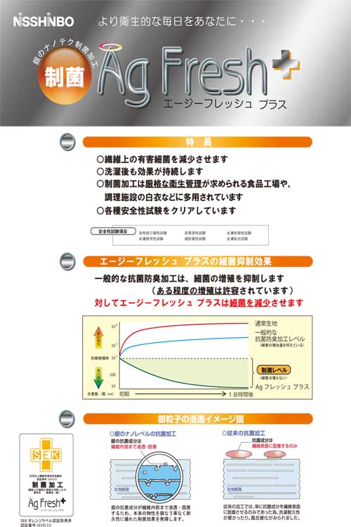 更にこの生地には、「Ag-Fresh+(エージ―フレッシュプラス)」