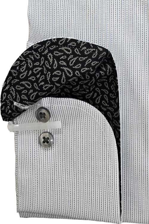 | 首回りと袖回りにブラック×ペーズリー柄の別布を採用 オシャレ感に衿汚れも目立たなくなります |
